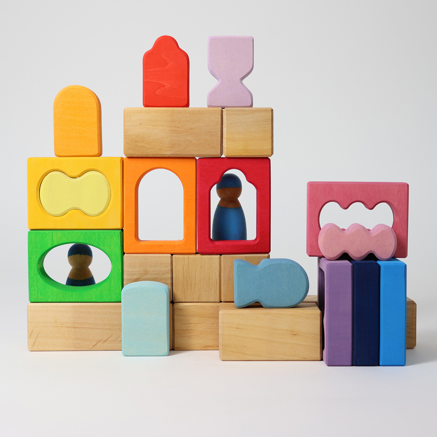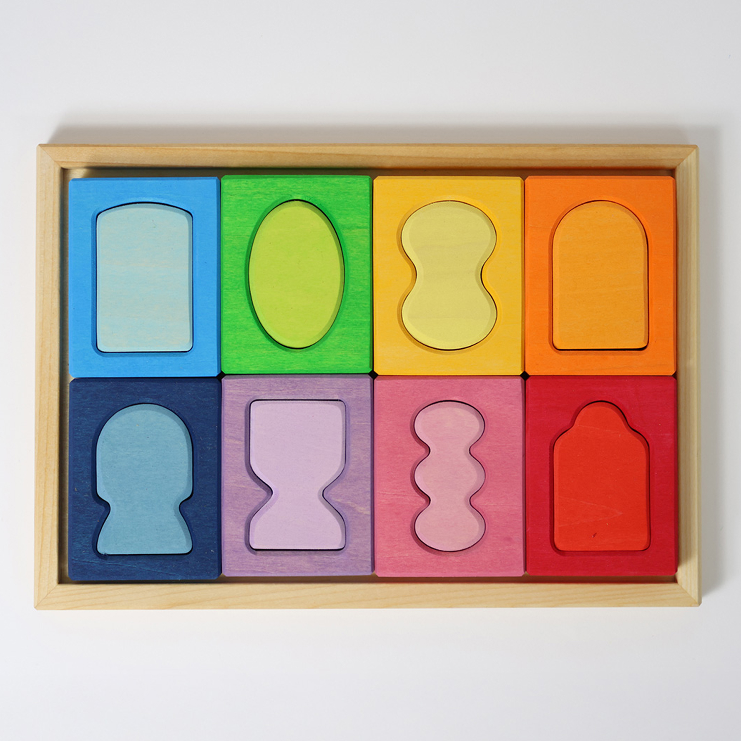 Die Kleinsten führt das Bauspiel als erstes Formen-Puzzle an ineinander passende Formen und Farbharmonien heran.