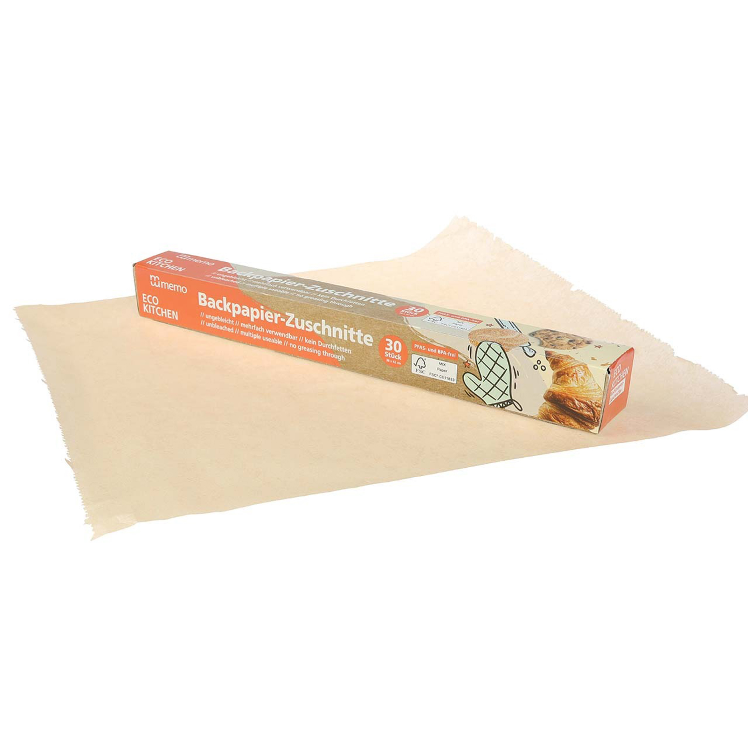 Ungebleichte, mehrfach verwendbare Backpapier-Zuschnitte