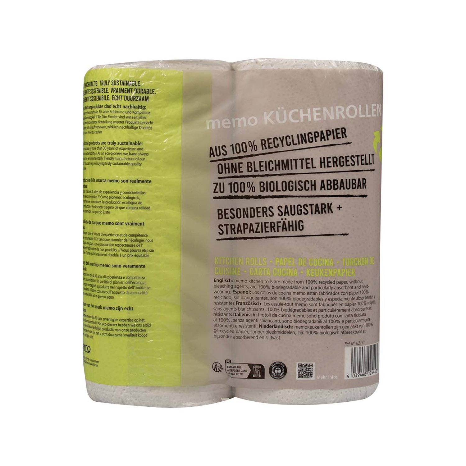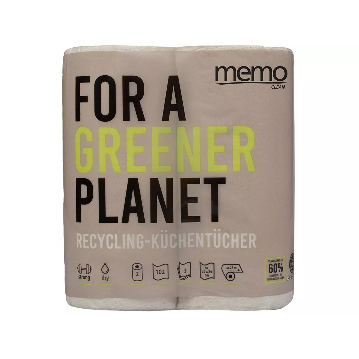Gleiche Menge, gleiche hohe Qualität, neues Gewand: die memo Küchenrollen sind mit ihrer Strukturprägung nicht nur besonders reißfest und saugstark, sondern dank ihrer neuen Verpackungseinheit können 29% bei der Folie für die Verpackung und 50% Karton bei den Hülsen eingespart werden.